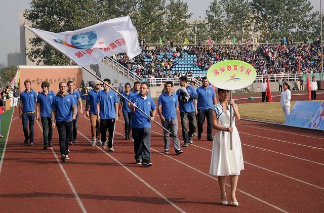 This is a team consists of International students, representing the School of International Education (SIE) to walk on the opening ceremony of the HDU's annual big event: the 31th sports meeting. Their appearance attracted eyesights of the whole audiance. This is the first time that SIE organize a team to join the sports team.