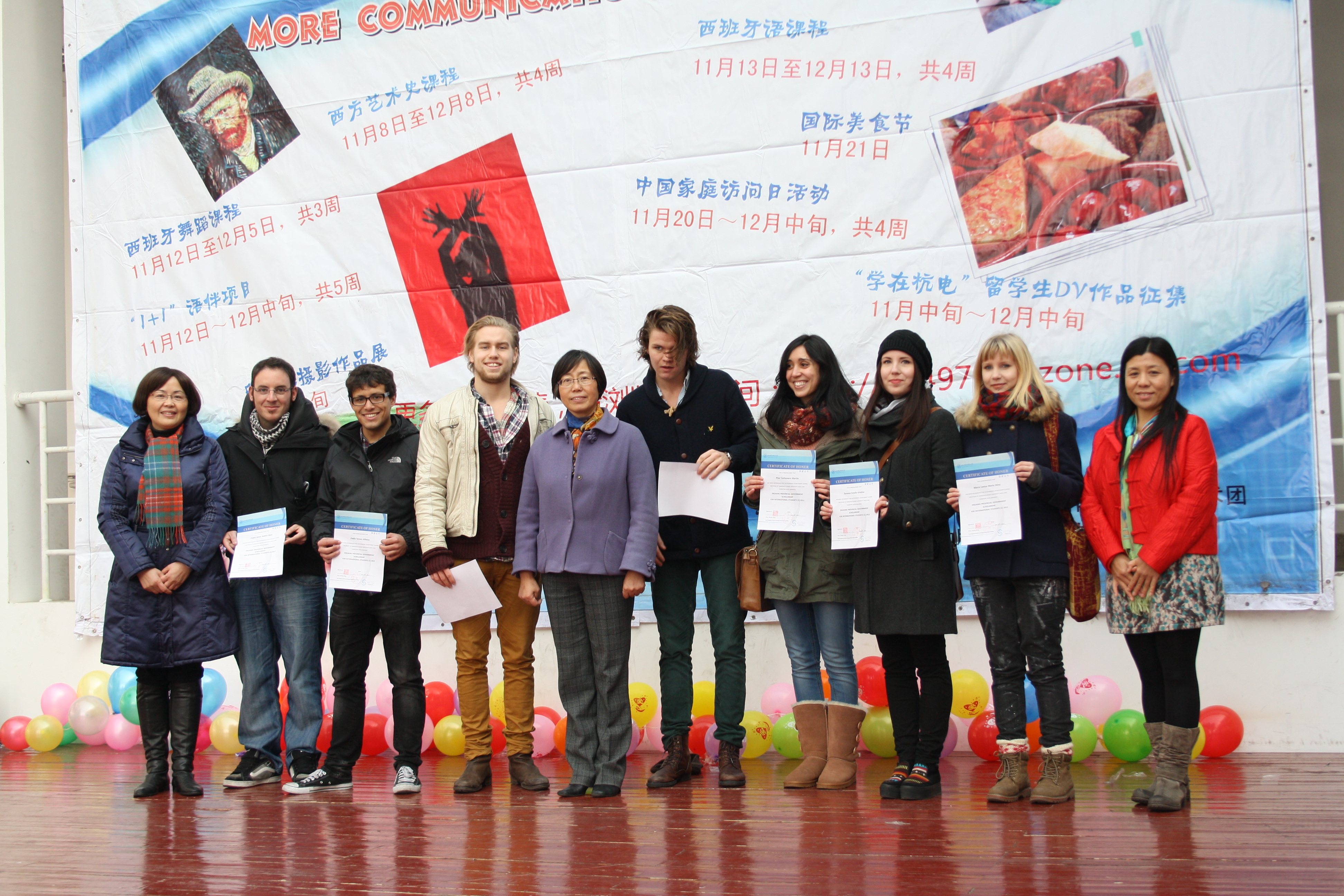 Zhejiang Provincial Scholarship for International Students 2012 and HDU Scholarship for Internationa Students were awarding to the students on Dec. 19th. Vice President Sun Lingling issued the honory cetifcates to the students and encouraged them to work hard and enjoy their studying and living at HDU.