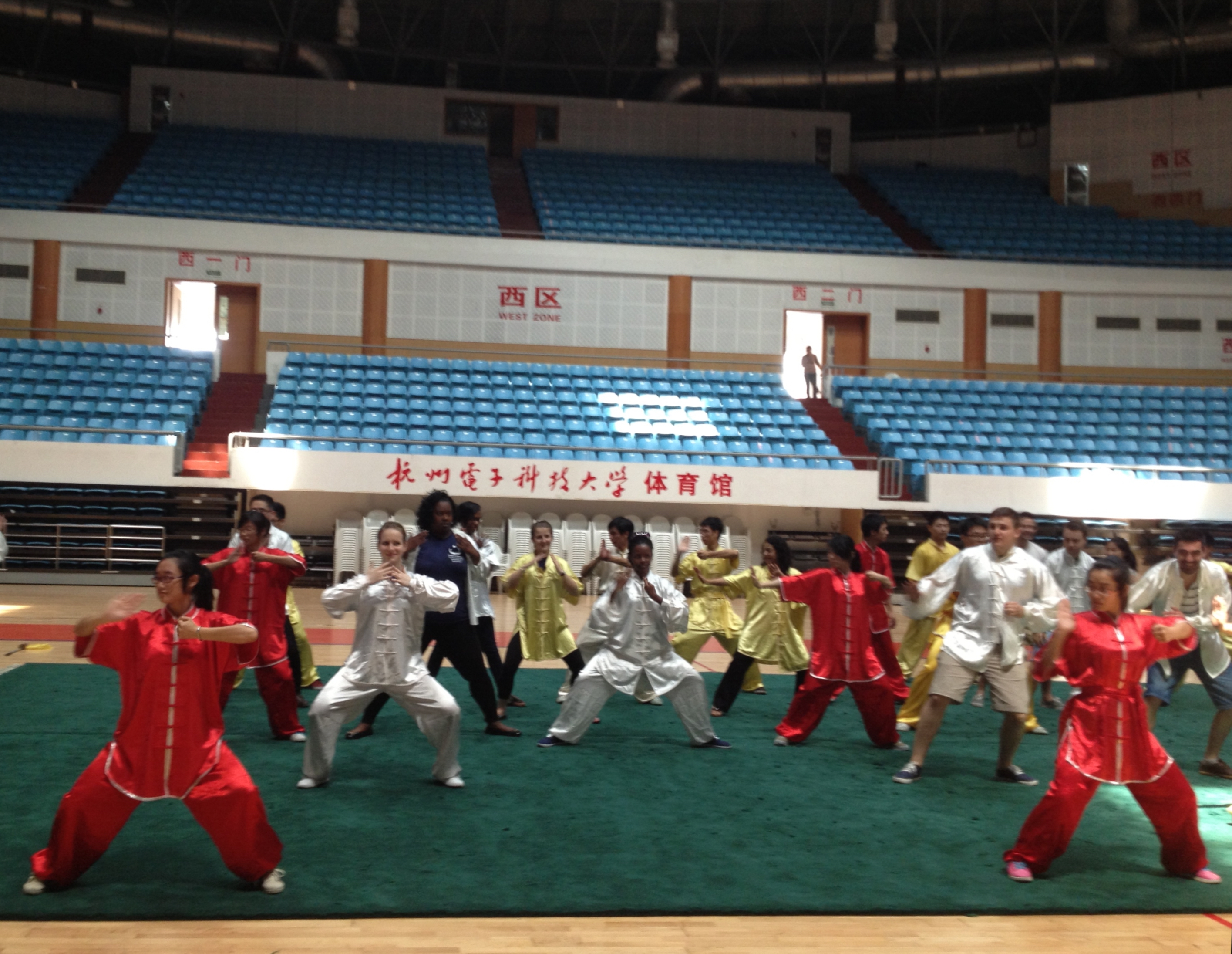 HDU has established collaboration relationship since 2010 and has successfully applied a joint-run bachelor program which has been approved by the Ministry of Education, PRC. Based on this program, the both sides are intended to explore more student exchange programs. This time the group visited the campus facilities and visited the School of Management, School of Digital Media and Design, School of International Education and Department of PE and Arts. The advanced facilities have left a deep impression to the group members. At the Department of PE and Arts, HDU students had a martial arts show and taught the group members how to play Taiji.