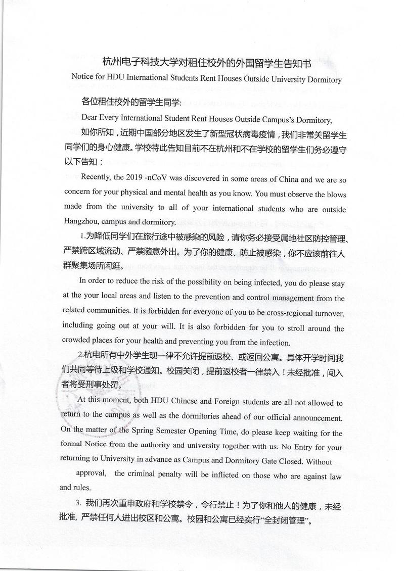 Notice for HDU International Students Rent Houses Outside University Dormitory