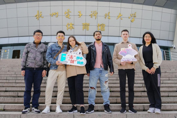Recently, the Publicity Department of the university, Tianmu News and Xuexi.cn made a news report on our international students recommending the Asian Games venue of HDU. Four representatives of international students from three countries came to the university's fencing gym to recommend the fencing gym and the spirit of Hangzhou Asian Games to more people in their own language, to help cheer for Hangzhou Asian Games, and to show the style of Hangzhou Dianzi University and the image of China to the world.
