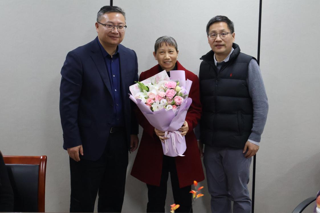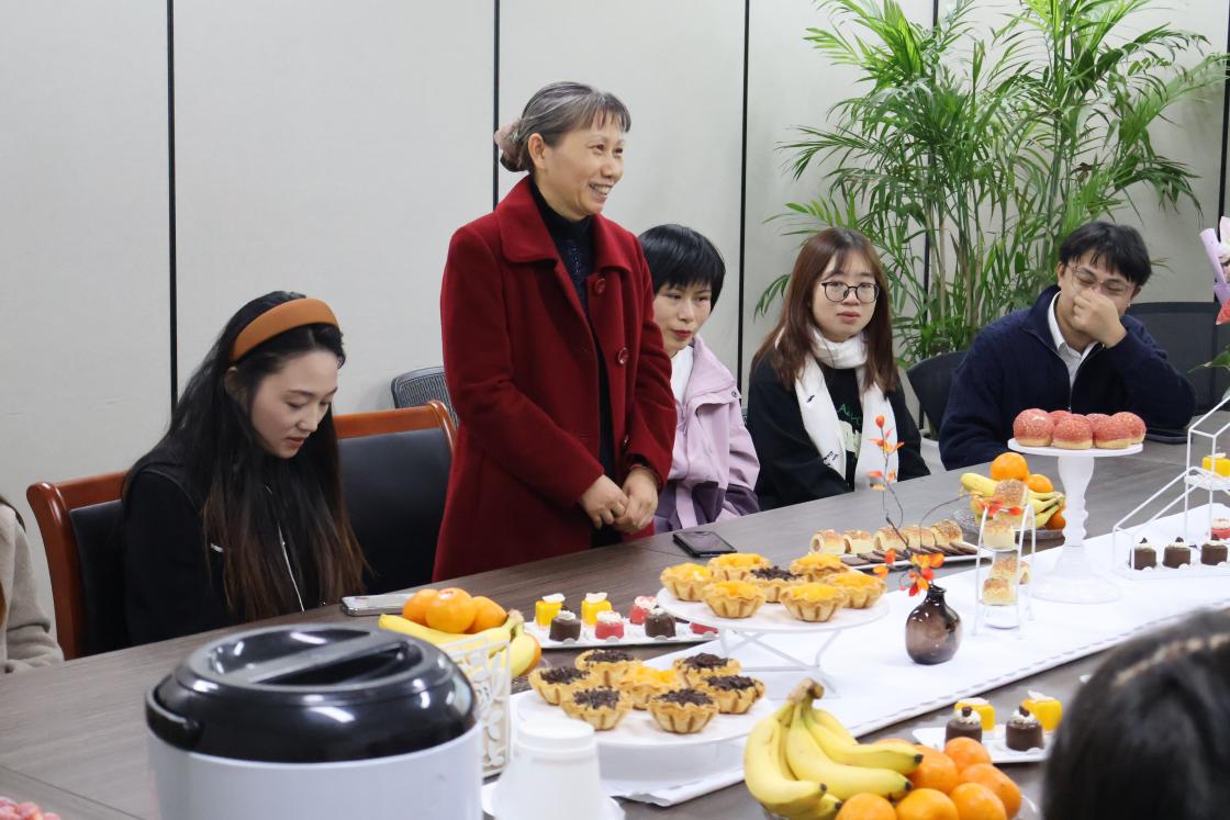 曾老师分享工作点滴与教育初心,寄语青年教职工坚守育人岗位、深耕国际教育领域,为学院及学校发展贡献力量,话语真挚引发全体与会人员共鸣。李文钧、王一安共同为曾老师颁发荣休纪念证书及纪念品。